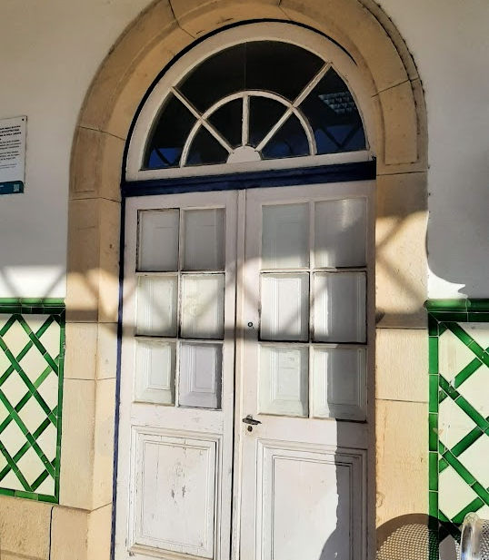 Estrutura em alvenaria, rebocada e pintada; socos, cunhais, pilastras e molduras dos vãos em cantaria de calcário; caixilharias de madeira pintada e vidro simples; silhares de azulejos; marquise e colunas em ferro; coberturas exteriores em telha cerâmica.